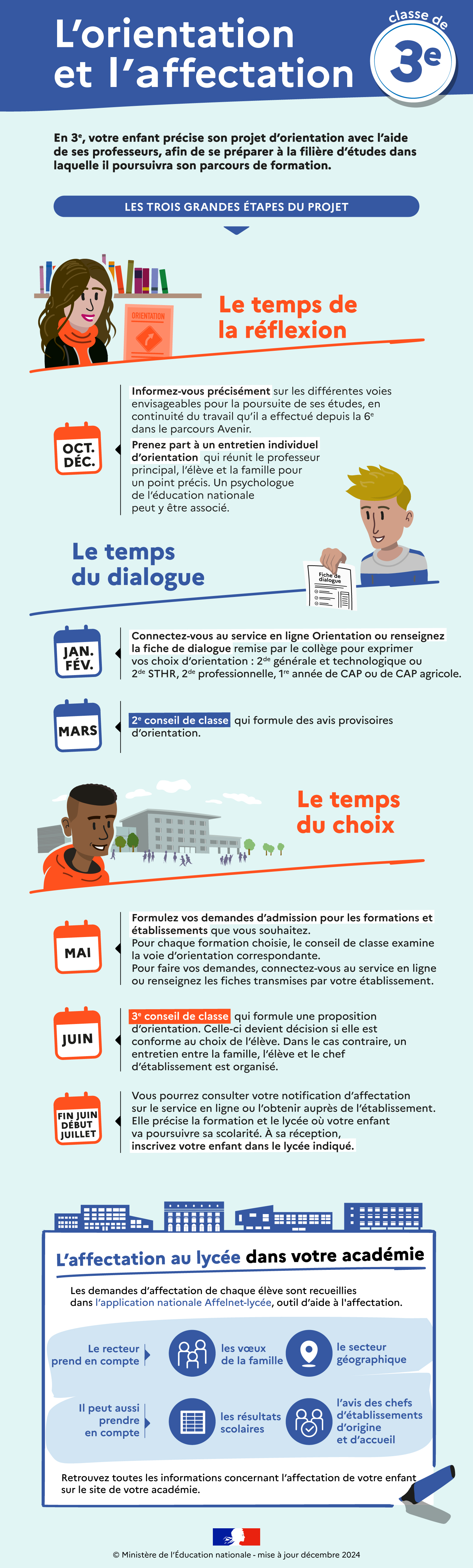 - mardi 30 juin 2026 : publication des résultats de l’affectation après les épreuves du diplôme national du brevet (DNB) et début des inscriptions en lycée.