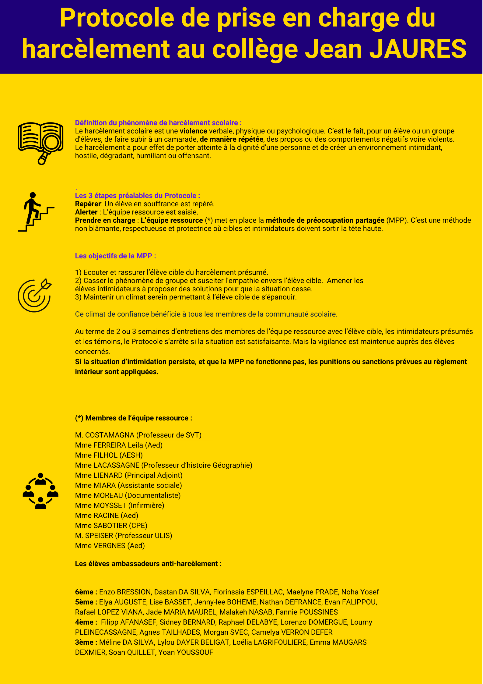 * Le protocole du collège concernant la prise en charge des situations de harcèlement.