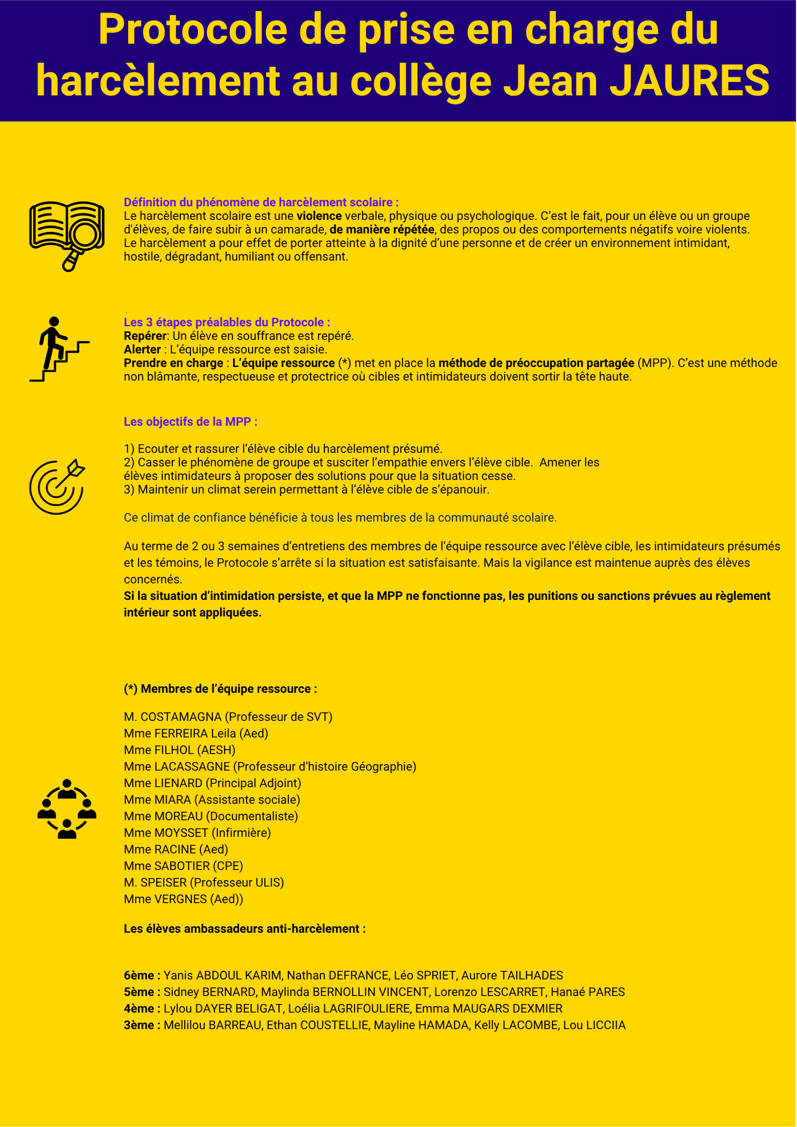 * Le protocole du collège concernant la prise en charge des situations de harcèlement.
